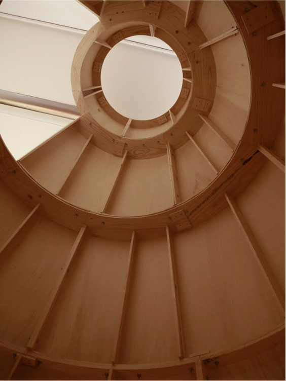 (...)Péndulo y plomada uses Uruguayan artist Gonzalo Fonseca’s sculpture La Torre de los Vientos*) as a reference, which was originally designed as a sort of “refuge sculpture” and built in the context of the 1968 Mexico City Olympics. Andrade recreates Fonseca's piece, exploring its scope by marking the limits of the habitat and the monument through the lens of fragility: the tower is destabilized—from the weight we move on to the pendulum—signaling the inevitable collapse of the forms we raise and assemble to take shelter and the eventual disappearance of our historical markers. (...)